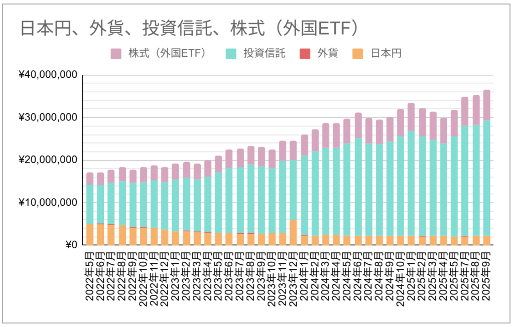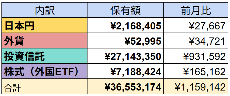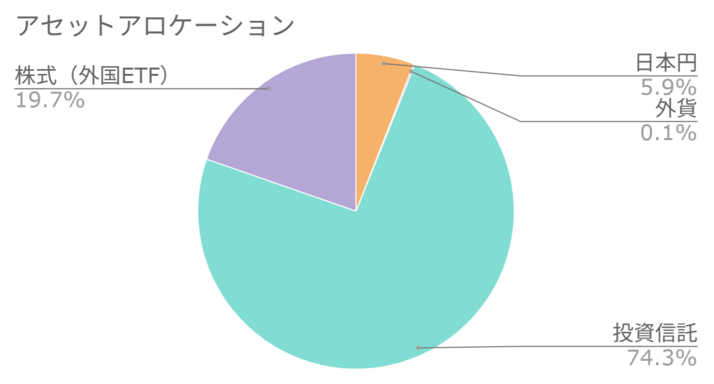運用資産に含めている日本円、米ドルは、給与からの入金とあわせて投資信託とETFを買うために使用しているので、基本的には漸減していきます。