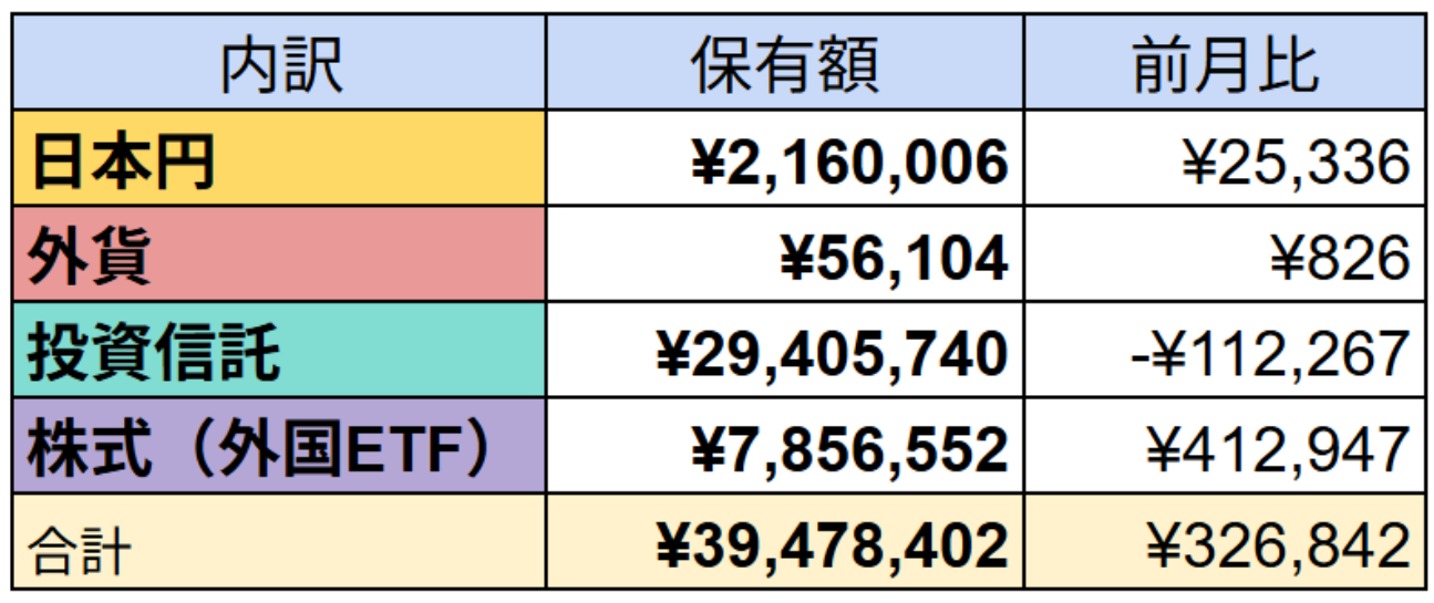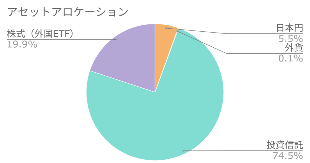 運用資産に含めている日本円、米ドルは、給与からの入金とあわせて投資信託とETFを買うために使用しているので、基本的には漸減していきます。