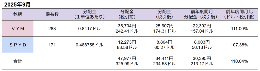 VYMは毎月積立&スポット買い、SPYDはスポット買いで目標分配金額を目指します。